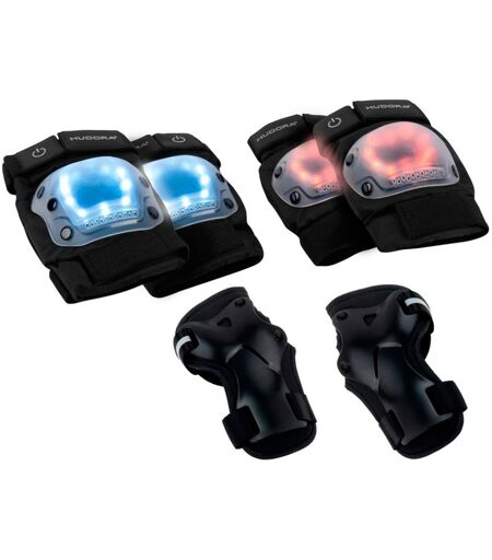 Med HUDORA LED-beskytterne er du altid synlig selv under dårlige lysforhold. De strålende lysdioder lyser i rødt (albue), hvidt (knæ) og beskytter brugeren pålideligt mod skade. ...