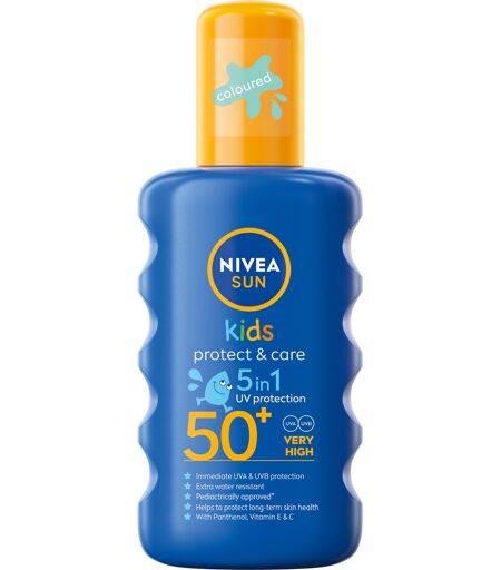 Pålidelig 5-i-1 UV-beskyttelse, der er skræddersyet til børns sarte hud. Umiddelbar UVA/UVB-beskyttelse med ekstra vandfast formel. NIVEA SUN Kids Protect & Care Coloured Spray SPF50+. • Øjeblikkelig UVA- og UVB-beskyttelse: Meget effektiv UV-beskyttelse, der hjælper med at forebygge UV-skader på kort og lang sigt. • Ekstra vandafvisende: Beskytter aktive børn pålideligt i alle sjove øjeblikke udenfor. • Beskytter hudens sundhed på lang sigt: UVA-UVB-beskyttelsessystemer, der beskytter den sunde udvikling af børns sarte hud og holder deres hud sund. • NY formel med Panthenol, C- og E-vitamin: Hurtigt absorberende og i et praktisk sprayformat til problemfri påføring uden klistrede hænder. • Farvet formel: Farven forsvinder og giver en jævn dækning. NIVEA SUN Kids Protect & Care Coloured Spray SPF50+ giver øjeblikkelig UVA- og UVB-beskyttelse. Den holder børns sarte hud sund, da den hjælper med at forebygge solskoldning og langvarige UV-skader. Produktet er ekstra vandafvisende for at beskytte aktive børn på en pålidelig måde, når de har det sjovt udenfor. Den forbedrede formel kombinerer ...