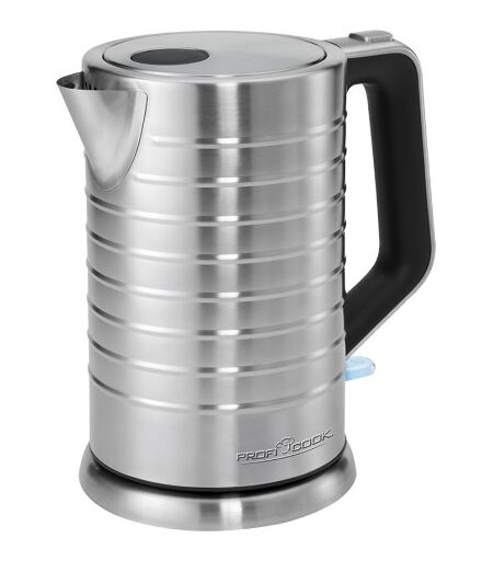 ProfiCook WKS 1119 Elkedel, 1.7 LDenne El-kedel er fremstillet i rustfri stål med en kapacitet på 1,7 liter. Elkedlen er ledningsfri til den 360 graders rotations-base. Selve basen tilsluttes i en stikkontakt. Tænd og sluk knap med blåt lys.Farve: Rustfri stålVolumen: 1,7 lVandstandsindikatorEffekt: 1850 - 2200 W ...