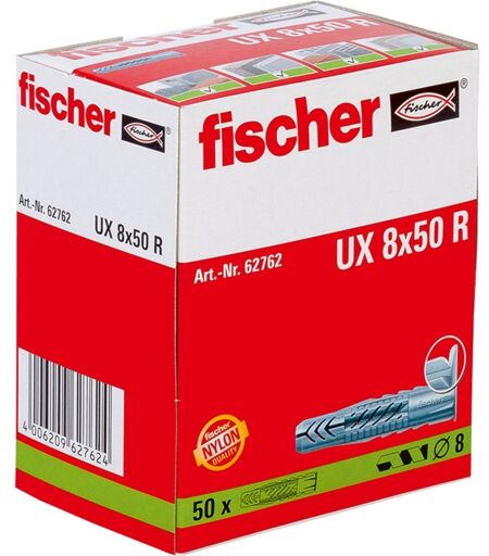 Fischer 062762 skrueanker og vægudtag 50 stk 5 cm, Dyvel