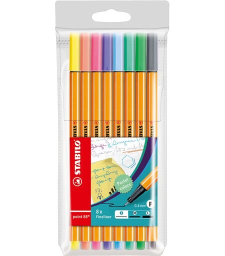 Stabilo point 88 set, fiberspetspennor med en spetsbredd på 0,4 mm. Ger tunnalinjer utan risk för att smetas ut, perfekt för att skriva eller måla. Lång "cap off" tid, ventilerad kork. ...