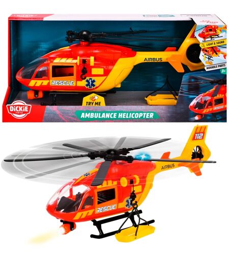 Dette fantastiske helikopterlegetøj er en kopi af en Airbus H145 redningshelikopter. Helikopteren har en optræksmotor, hvorigennem rotorbladene roterer. Halerotoren kan også drejes manuelt. Helikopteren skaber iøjnefaldende lys- og lydeffekter. Derudover er ekstra redningstilbehør om bord: En båre kan sænkes til jorden via et spil. Når de sårede er sikret med båren, læsses den ind i helikopterens lastrum via bagdøren - nu kan helikopteren starte sin returflyvning. ...