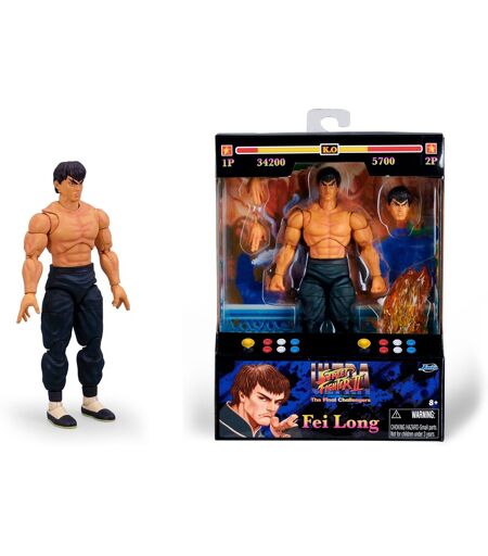 For fans af den japanske videospilserie Street Fighter II er der en række spilfigurer fra Jada Toys. Figurerne er hver 15 centimeter høje og har 25 artikulationspunkter - til udtryksfulde stillinger. Hver figur leveres med et udskifteligt hoved, alternative hænder og forskelligt tilbehør, der matcher karakteren. Inkluderet i dette sæt er en figur af Fei-Long. ...