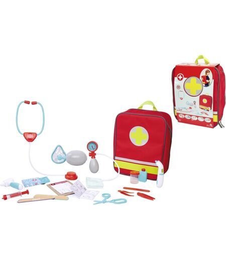 Håbefulde læger og paramedicinere fra tre år kan øve sig med denne rygsæk: Rygsækken på 24 x 30 centimeter indeholder en masse medicinsk legetøj såsom en blodtryksmåler, en sprøjte, saks, plaster eller endda et stetoskop. Stetoskopet imponerer med en lydfunktion, der afspiller et hjerteslag. Mange gode muligheder for rollespil på farten, fordi alle dele er sikkert gemt i rygsækken og nemt kan tages med dig. ...