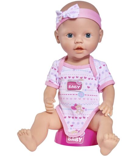 Denna äta och väta bebisdocka från New Born Baby Kommer med massor av tillbehör, vilket gör det lätt för den lilla dockföräldern att ta hand om sin bebis. Förutom napp, blöja, bestick, tallrik och nappflaska, ingår även en potta. New Born Baby dockan kan dricka vatten (inga batterier behövs) och sedan kan den kissa på pottan. Längd: 38 cm. Passar barn från 3 år. Av hygienskäl, töm artikeln på vatten och låt torka efter användning. Varning! Inte för barn under tre år. Risk att kvävas. Smådelar som kan sväljas. ...