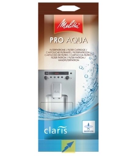 Melitta Pro Aqua Filterpatron Melitta® Pro Aqua vandfilter til filtrering af kalk Med anvendelse af Melitta® Pro Aqua-filterpatron får du altid friskt filtreret vand til din maskine. Filteret, som placeres i vandtanken, sørger for at kaffevandet bliver ph-neutralt. Dette giver kaffenydelse og optimal beskyttelse af CAFFEO®. Vandfilteret skal udskiftes senest hver 2. måned. ...