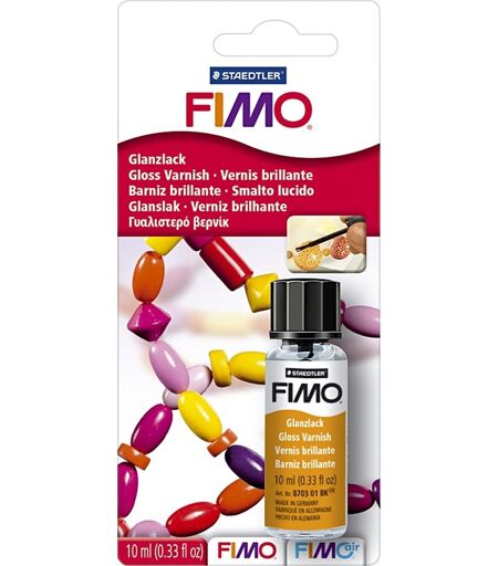 Glans- og beskyttelseslak til dine kreationer i FimolerMed denne lak fra Fimo får du en vandbaseret glanslak, som giver dine hærdede figurer og kreationer i Fimoler en flot, glat og glansfuld overfalde. Samtidig er Fimo glanslak også en god beskyttelseslak, da den ligger en beskyttende hinde på overfalden af dine figurer, så de holder sig flotte i længere tid. Lakken påføres nemt ved hjælp af den lille børste i låget og tørrer klart og gennemsigtigt op. Dertil er lakken lysægte, så farverne forbliver stærke, klare og glansfulde.Indhold: 10 mlTil glans og overfladebeskyttelsePåføringsbørste i låget ...