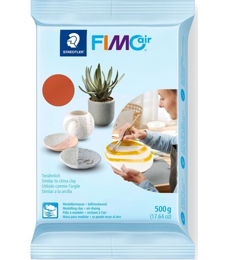 Modelleringsler til kreativ udfoldelse Med Fimo Air ler får du et modelletingsmateriale, der minder utroligt meget om traditionel ler. Leret har en blød konsistens der gør det super nemt at arbejde med, så du nemt kan slippe fantasien og kreativiteten løs og kan lave unikke kunstværker på et øjeblik. Farve: Terracotta Indhold: 500 g Hærdes ved lufttørring i 24 timer Godt og kreativt alternativ til almindeligt ler Fimo Air ler består af 95% naturlige stoffer og leret kan bruges som alternativ til almindeligt og traditionelt ler. Leret er et oplagt valg til både kunstnere og hobbybrugere, ligesom det med fordel kan bruges til forskellige kreative formål og undervisningsbrug i skolen, børnehaven, fritidshjemmet eller SFO’en. Selvhærdende ved stuetemperatur I modsætning til andre typer af Fimo ler skal Fimo Air ikke hærdes i ovnen, men skal i stedet overlades til lufttørring ved stuetemperatur. Efter 24 timer vil leret være tørret helt op og være fuldstændig hærdet. Efter tørring kan emnet bearbejdes og du kan f.eks. male, lakere og dekorere din kreation eller du kan file den i facon og bore huller til ophæng osv. ...