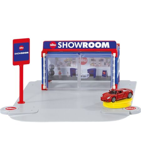 Showroomet for denne bilforhandler fra WORLD-serien fra SIKU, der er udstyret med en farvet bagvæg, giver plads til op til tre køretøjer. Uanset om det er nye eller brugte biler - hver dag kan der bygges et andet spil. Store døre med højglanspolerede vinduesoverflader gør det nemt at komme ind og ud. Den medfølgende Porsche Carrera GT kan udstilles som et særligt blikfang på den roterende præsentationsplatform. Takket være standardpladen kan forhandleren problemfrit kombineres med andre artikler i SIKU WORLD-serien. Indkørslen giver mulighed for fleksibel installation i en legeverden. Dette kan placeres på enhver WORLD-plade og giver dermed mulighed for at køre på det ønskede sted. ...