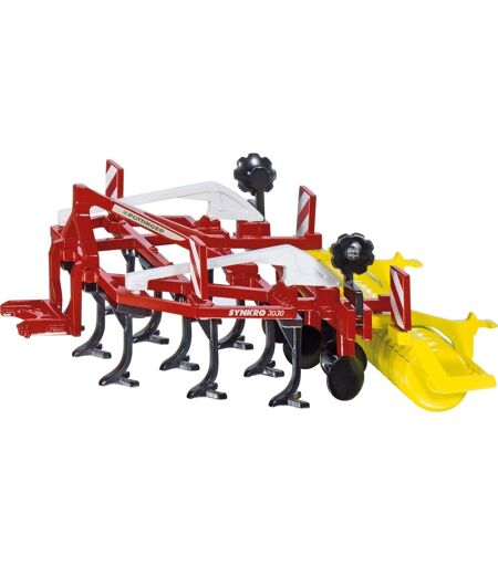 Synkro-modellen fra det traditionelle østrigske firma Pöttinger er en af de mest alsidige jordbearbejdningsmaskiner på markedet. Den originale tre meter brede kultivator med metalramme er udstyret med en roterende pakkerrulle ud over tænderne. Denne model, malet i rød og gul, kan let fastgøres til SIKU traktorer i en skala fra 1:32. ...