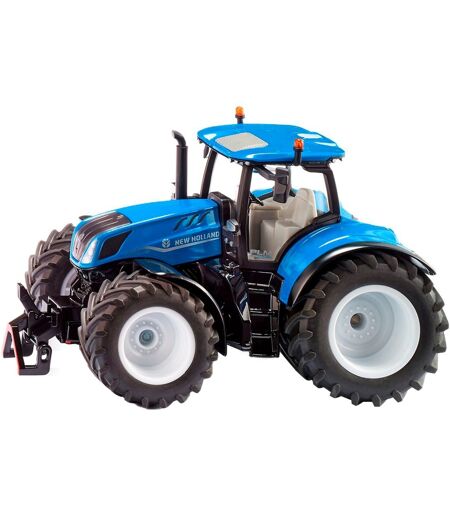 HD står for "Heavy Duty": New Holland T7.315 HD er oprindeligt en high-end traktor med masser af kraft og høj komfort. Denne topmodel blandt de store traktorer er stærk nok til trækkraft, jordbearbejdning, ballepresning og transport. SIKU-modellens krop er lavet af metal, kabinen glaseret og aftagelig. Det detaljerede design giver dig også en ægte traktorfølelse i interiøret. Forakslen bevæges via dobbeltdrejningsstyring, motorhjelmen kan åbnes. Denne traktor har en standard SIKU-kobling bagpå og foran og kan derfor kombineres med alle trailere og tilbehør fra FARMER-serien. Som tilbehør medfølger en frontvægt, som kan udskiftes med en simpel mekanisme med frontkoblingen. ...