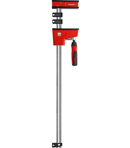 BESSEY BODY clamp REVO KRE150-2K opnår en fastspændingskraft på op til 8.000 N og kan også fastspænde og sprede emner med følsomme overflader nøjagtigt parallelt med hinanden, selv bag og til siden af skinnen. Selv hjørner og kontrasterende kanter eller spidse og runde overflader kan justeres perfekt. De meget store fastspændingsflader er monteret vinkelret på skinnen, og de tre aftagelige beskyttelseshætter er limafvisende og modstandsdygtige over for maling og fedtopløsningsmidler. Emnestøtterne undgår kontakt mellem emnet og skinnen. Det metalforstærkede plasthus og det optimerede glidebeslag med dobbelt skridbeskyttelse holder pålideligt klemmen på den indstillede klemkraft og forhindrer utilsigtet glidning af glidestangen i en uhindret tilstand. Med det ergonomisk formede 2-komponent plasthåndtag med sekskantstik kan klemkraften med et maksimalt drejningsmoment på 17 Nm påføres meget komfortabelt. BODY clamp REVO KRE150-2K tilbyder et enormt antal fleksible anvendelsesmuligheder takket være sofistikeret ekstraudstyr. ...