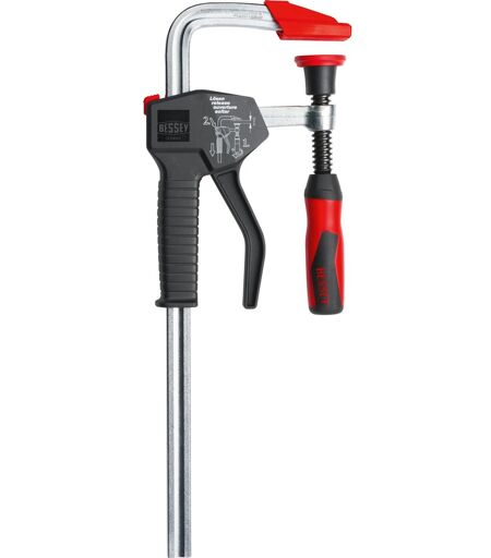 BESSEY EHZ30-2K enhåndsklemmen opnår en klemkraft på op til 3.500 N. Det faste beslag og trykpladen er hærdet og lavet af et stykke, de spænder fjedrende og elastisk. Det ergonomisk formede plasthåndtag med pumpehåndtag løber parallelt med skinnen og kan betjenes fra skinne- og håndtagssiden. EHZ30-2K enhåndsklemmen er også udstyret med aftagelige, elastiske beskyttelseshætter på spændefladerne, som muliggør materialevenligt arbejde og et sikkert greb selv med følsomme materialer. ...