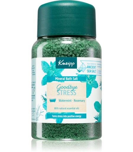 Kneipp Goodbye Stress, 500 g, Badesalte til kvinder , Badesaltet Kneipp Goodbye Stress bringer velvære og afslapning til dagligs baderutinen. Egenskaber: genopbygger huden smidiggør og blødgør har afslappende virkning dufter behageligt Brugsvejledning: Hæld i det varme bad og lad det opløse. ...