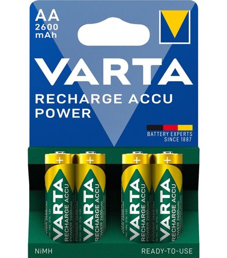 Varta Ready2Use rechargeables are precharged. Once charged these new batteries still retain 80% of their capacity after one year of storage. The Ready2Use Professional Accu is the first choice for all digital, high-performance products like digital cameras, MP3 players and many others. • Used For:Audio/Video • System:NiMH • Extra Info:Ready 2 Use • Shape:Bar • Voltage:1.2 VDC • Capacity:2500 mAh • Diameter:14.5 mm • Height:50.5 mm • Colour:Green / Yellow • Reference:HR6 ...