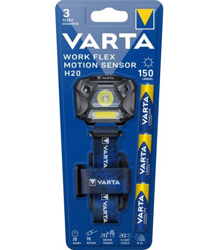 Varta WORK FLEX MOTION SENSOR H20 Sort, Blå Hovedbånd lommelygte LED, LED lys