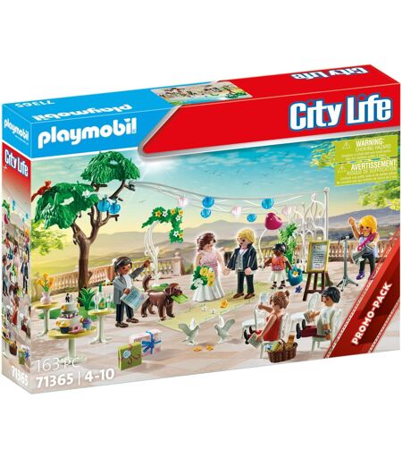 Det forelskede par har set frem til denne dag i flere måneder: Endelig finder deres bryllupsceremoni sted i det fri. Parret går frem til musikerens romantiske længder, hvor registratoren for PLAYMOBIL City allerede venter på at gifte sig med de to. Hunden blev valgt som ringbærer, der bærer ringpuden i munden og logrer med halen. Efter vielsen ser parret og gæsterne frem til den lækre bryllupskage, muffins og en kølig forfriskning. Og så, under kransene med lanterner, fortsætter festen ind i natten! ...