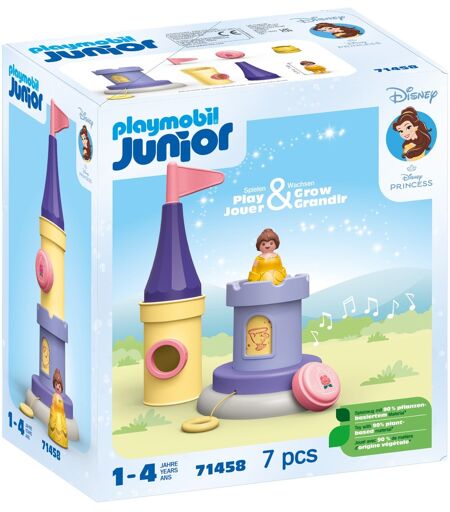 Det fortryllende legetårn med melodi fra PLAYMOBIL inviterer dig til at danse og drømme. Den mekaniske spilledåse aktiveres nemt ved at trække i snoren i bundpladen og spiller en drømmende melodi (inspireret af titelsangen fra filmen "Skønheden og Udyret"). Belles venner går forbi og danser i tårnets vinduer. Hvem af vennerne danser sjovest? Belle vil danse med og hopper hurtigt op i tårnet, hvor hun snurrer rundt med musikken. ...