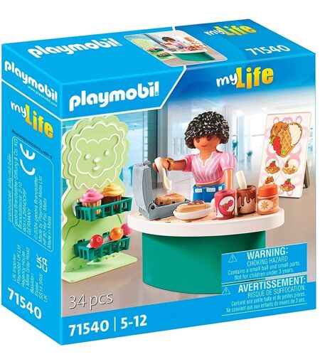 Ganske enkelt lækkert: Denne slikbod har et bredt udvalg til en lille shoppingpause i PLAYMOBIL City. Uanset om vafler, cupcakes eller slikkepinde: alle finder noget her. Sælgeren dekorerer de søde snacks med pulveriseret sukker, æbleauce eller chokoladecreme - simpelthen lækkert! Sættet kan frit kombineres med andre myLife-sæt med temaet shopping - så du kan sammensætte et komplet indkøbscenter. ...