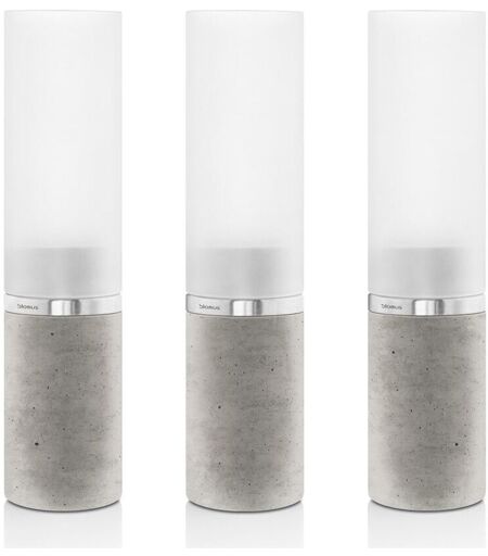 Blomus Faro Tealight Holder Set 3 pcs H: 21 cm - Stainless Steel Matt Stilrene og smukke lysestager fra Blomus. Med dette fine sæt, som består af tre lysestager i beton, rustfrit stål og glas, kan du skabe en hyggelig atmosfære i hjemmet. Lysestagernes glasbeholdere har en smuk satinfinish, hvilket giver en blød glød og et behageligt lys. Den bløde glød fra lysets skær sammen med betonen giver en smuk kontrast, som får det ellers kølige beton til at formidle en følelse af varme. Med deres minimalistiske udtryk er det lysestager, som vil passe ind i enhver indretning. Du kan med fordel kombinere sættet med andre lysestager fra Faro serien for at skabe et smukt lysspil. OBS: Lys medfølger ikke. Designer: Flöz Design Materiale: Rustfrit stål Glas Beton Mål: H: 21 cm Ø: 5 cm ...