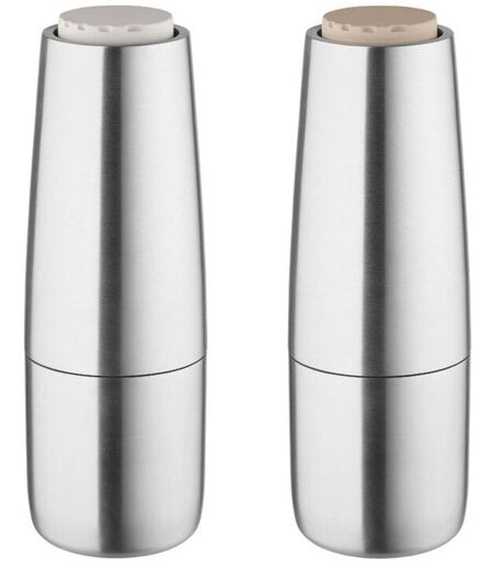 Blomus Salpi Salt- & Peppermill H: 20 cm - Matt Stilren salt- og peberkværn fra Blomus. De fine kværne kan nemt åbnes og genopfyldes med lækker salt og smagfuld peber via den enkle koblingsmekanisme. Kornstørrelsen kan desuden justeres fra grov til meget fin. Med deres funktionelle design udført i matpoleret rustfrit stål og justeringshjule i to flotte forskellige toner af beige er det kværne, som vil tilføre et moderne touch til spisebordet. Designer: Nina Thöming Materiale: Rustfrit stål Plast Keramik Mål: H: 20 cm Ø: 7 cm ...