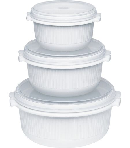 Emsas MICRO FAMILY mikrobølgeovne er alsidige. De er velegnede til køleskabe og frysere, frostbestandige og robuste. Tilberedt mad eller rester kan opbevares og fryses i MICRO FAMILY mikrobølgepotter, hvorefter de er ideelle til optøning og opvarmning. Du skal blot vende låget og opvarme maden i mikrobølgeovnen. Specialmaterialet sikrer en særdeles effektiv varmefordeling. Micro Family mikrobølgegryderne tåler selvfølgelig opvaskemaskine, lugtfri og er smagløse. ...