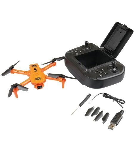 Masser af flyveglæde med RC Quadcopter Pocket Drone fra Revell! På trods af sin kompakte størrelse på kun 110 mm i længden, 134 mm i bredden og 35 mm i højden, inspirerer denne minidrone med en række funktioner, der vil glæde både begyndere og avancerede droner. Med en rækkevidde på op til 40 meter giver det plads nok til at udforske omgivelserne fra fugleperspektiv. Det kraftige batteri, der kan oplades via USB, giver en driftstid på op til 7 minutter. Ombord er et 720p-kamera, der kan overføre live-billeder til en smartphone via app (download påkrævet). Dronen har en højdesensor, tre hastighedsniveauer, en hovedløs tilstand og en flip-funktion. Med den praktiske start- og landingsfunktion er den også nem at håndtere for begyndere. Og takket være det foldbare design kan dronen nemt transporteres i fjernbetjeningens opbevaringsrum. ...