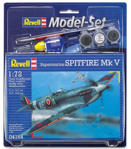 Startsæt i plastik byggesæt i skala 1:72 af Spitfire Mk V jagerflyet fra Anden Verdenskrig. Pakken indeholder det du skal bruge til at bygge og male din model. Revell laver skalamodeller i plast til dig, der kan lide modelbyggesæt. For at male din model præcis som på emballagen, skal du muligvis supplere med flere farver. Indeholder: bygningsdele, lim (12,5 g), pensel med dobbelt spids og tre dåser maling. Antal dele: 39 Mål: 127x140 mm Anbefalet alder: 10+ Anbefales ikke til børn under 3 år. ...