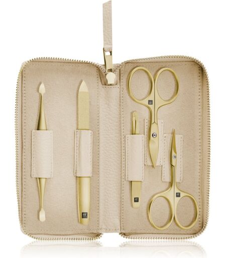 Zwilling Premium Gold, 5 stk., Manicure og neglefile til kvinder , Velplejede negle er dit visitkort – vis dig fra din bedste side, uden at det er nødvendigt at besøge en professionel salon. Filen Zwilling Premium Gold gør det muligt for dig at give neglene en præcis form og lave små justeringer bekvemt i dit eget hjem, så de ser ud, som var de ordnet i salonen. Takket være den vil dine negle altid fremstå pæne, velplejede og uden nogen ujævnheder. Sættet indeholder: Zwilling Premium Gold Neglesakse 1 stk. Zwilling Premium Gold Saks til negle og neglebånd 9 cm Zwilling Premium Gold Neglefil 13 cm Zwilling Premium Gold Skrå pincet 1 stk. Neglebåndsskubber og fjerner 1 stk. Rejseæske 1 stk. Egenskaber: former og forkorter neglene kommer flossede og knækkede negle i forkøbet filer præcist og målrettet filen arbejder utroligt forsigtigt mod neglehuden og laver ingen hudafskrabninger overfladen på filen holder længe har en praktisk form for en lettere håndtering hjælper med at forhindre nedgroede negle er behagelig at holde i hånden understreger og fremhæver øjenbrynenes udseende generelt giver øjenbrynene et stylet look Brugsvejledning: Brug efter behov. ...
