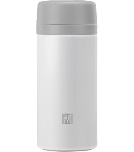 Det hvide termokrus med si fra ZWILLING Thermo-serien gør det nemt at have te og vand med på farten. Du skal blot tilføje frisk frugt, teblade eller frisk ingefær direkte til flaskens termiske filter. Takket være den integrerede si, kan du nyde din yndlingsdrik ubekymret, mens frugt og teblade forbliver i flasken. Termokruset i hvid kan indeholde hele 420 ml. og holder tæt under transport. Varm te forbliver varm i termokruset i op til 7 timer, mens kolde drikke forbliver behageligt kølige selv efter 10 timer i termokruset. Det vakuumisolerede termokrus kan nemt rengøres, og filteret kan fjernes. Den vakuumisolerede beholder har en praktisk skridsikker base, så den står sikkert på ethvert underlag. Den ideelle termokop til te eller vand. Effektiv dobbeltvægsisolering. Holder drikkevarer varme i op til 7 timer eller kolde i 10 timer. Kapacitet 420 ml. Minimalistisk og funktionelt design i hvid. Holder tæt under transport. materialer af høj kvalitet ...