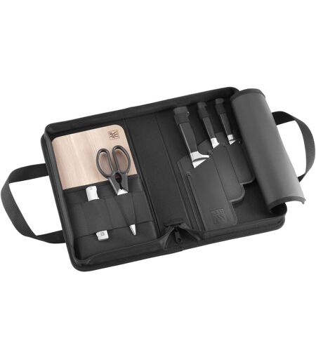 Uanset hvor du skal hen, kan du tage dette sæt med dig! Du har alt, hvad du har brug for i dit rejsekøkken. ZWILLING sættet er perfekt til campingvogne, telte og picnics! Pak dine ting, og tag sættet med: Alt på plads, sikkert og ryddeligt. Den elegante taske passer perfekt ind i campingvognens køkkenskuffe eller i picnickurven, og når du åbner den, begynder dit kulinariske eventyr, uanset hvor det går hen. Takket være den gennemprøvede ZWILLING-kvalitet behøver du ikke gå på kompromis med kvaliteten af dine knive på ferien. Et must på rejsen!. Med ZWILLING Four Star kokkekniv (16 cm), universalkniv (13 cm) og spids urtekniv (10 cm) - vores bestsellere, alle knive er fremstillet i Tyskland. Inklusiv knivtaske til sikker og pladsbesparende opbevaring. Inkl. sommelierkniv, proptrækker og flaskeåbner. Ideel til camping, autocamper eller picnic . FSC-certificeret skærebræt i bøg ...