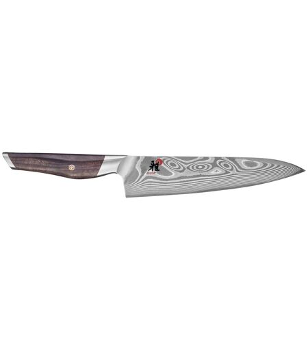 MIYABI Iki er den kompromisløse japanske kokkekniv til alle, der forventer toppræstationer: Fremstillet i mere end 130 arbejdstrin af specialuddannede erfarne håndværkere. Bladet i 49 lag af ultrahårdt MC66-stål har det eksklusive Moonlight-damaskmønster – et specielt damaskmønster, der er eksklusivt for Iki – og imponerer med en kunstnerisk slibning. Det håndformede skaft af mørkt ahorntræ ligger perfekt afbalanceret i hånden og er optimalt tilpasset til bladet. Uanset om det er kød, fisk eller grøntsager – denne kokkekniv er en allrounder i særklasse og et ægte statement for kompromisløs kvalitet. Made in Seki – fremstillet af specialuddannede erfarne håndværkere. Fascinerende Moonlight-damaskmønster på bladet i 49 lag: Hver kniv er et betagende unikum. Ultrahårdt MC66-pulverstål (66 HRC), CRYODUR ishærdet for maksimal skarphed og holdbarhed. Bladet slibes i hånden efter den traditionelle Honbazuke-metode til en vinkel på 9,5° til 12°. Forfinet med speciel slibning, der adskiller den flade bladoverside og det slebne skær. Elegant, håndformet skaft i mørkt ahorntræ – formen er perfekt tilpasset til bladet for fremragende håndtering ...
