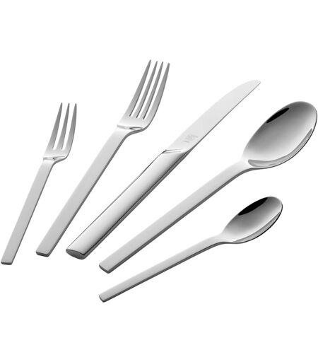 Skab attraktive, elegante omgivelser for dit middagsbord med dette ZWILLING MINIMALE bestiksæt i 60 dele. Det er designet af Matteo Thun, indeholder nok bestik til tolv personer og har et flot minimalistisk design. Hvert kuvertsæt inkluderer en gaffel, spiseske, kniv, kagegaffel og teske. Bestikket er lavet af 18/10 rustfrit stål af høj kvalitet, som er meget robust, rustbestandigt og tåler rengøring i opvaskemaskinen. Dæk et middagsbord med stil med dette ZWILLING MINIMALE bestiksæt i 60 dele. ...