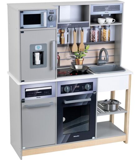 Miele Family legekøkken i træ er udstyret med komfur, ovn, mikrobølgeovn, køleskab og vask. Det omfattende udvalg af tilbehør og lys- og lydeffekterne sikrer endnu mere sjov. ...