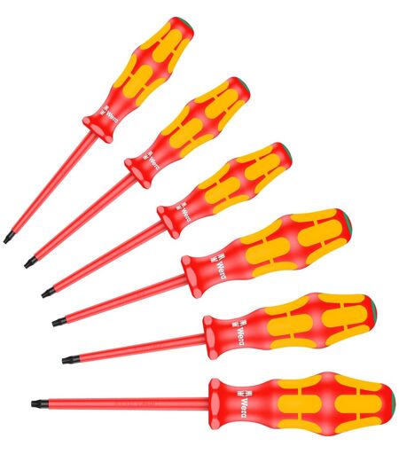 Wera 167 i/6 skruetrækkerudskiftningen Kraftform Plus Series 100 med Black Point-spids består af seks TORX-skruetrækkere med VDE-testet isolering. Sikkert arbejde op til 1.000 volt er således muligt. Wera Black Point-spidsen og den komplekse hærdningsproces giver holdbarhed, nøjagtighed af pasform og optimeret korrosionsbeskyttelse. Med multikomponent kraftformhåndtaget udviklet af Wera finder hele hånden kontakt med håndtaget. De glatte, hårde zoner glider gennem hånden som hjul, når de griber fat, og muliggør særligt høje arbejdshastigheder. De gribende, bløde zoner er optimale installationsoverflader for hånden og muliggør høj kraftoverførsel. Håndtagsmærkningen med skruesymbol og håndtagsstørrelse gør det også nemmere at finde i værktøjstasken og på arbejdspladsen. Skruetrækkersættet leveres med rack, der kan fastgøres til væggen. Dette sikrer korrekt opbevaring og hurtig adgang. ...