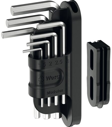 Tool-Check Modular-systemet fra Wera giver mulighed for at kombinere Tool-Check Modular-produkter på en superkompakt måde afhængigt af kravene. Tool-Check Modular emnerne kan til enhver tid kombineres, udskiftes eller udvides. Den 7-delte Wera Tool-Check modulære vinkelnøgle Hex-Plus 1 kan forbindes med andre elementer i Tool-Check Modular System med den stive Tool-Check Modular Adapter 9549. En fleksibel forbindelse, der kan foldes, er også mulig med det fleksible hængsel 9550 (sælges separat). Vinkelnøglerne har Wera Hex-Plus-profilen. Sekskantskruer har problemet med at blive "drejet" hurtigt. Årsagen er effekten af værktøjets skarpe kant på skruehovedets indvendige overflade. Wera Hex-Plus værktøjer har større kontaktflader i skruehovedet, hvilket forhindrer hakeffekten og dermed deformationen af skruen. Samtidig kan der overføres op til 20 % højere drejningsmomenter. Forresten, Hex-Plus-værktøjer passer ind i enhver standard sekskantskrue. Vinkelnøglernes rammeforkromning sikrer fremragende overfladebeskyttelse, selv mod korrosion, og en lang levetid. Den laserbehandlede, slidstærke størrelsesmærkning på vinkelnøglerne gør det nemt hurtigt at finde den størrelse, du leder efter. ...