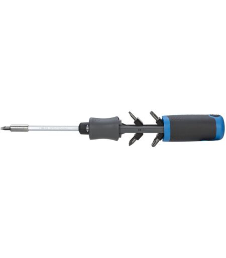 SilentGEAR 2169-012 skraldeskruetrækker fra GEDORE er velegnet til bits med 1/4" sekskantet stikdåsedrev. Den 1/4 " sekskantede stikkontaktholder med stærk neodymmagnet muliggør en lynhurtig udveksling af den krævede bit. Skraldefunktionen tilbyder en ergonomisk skiftering (højre, fast, venstre). Dette gør det muligt at udføre finjusteringsarbejde i den blokerede midterposition uden at skulle ændre tilspændingsretningerne hver gang. Den meget lave drejevinkel på næsten 0° kan ikke måles med mekanisk måleudstyr, så skraldeskruetrækkeren er velegnet til præcist arbejde i de trangeste rum. Magasinet indeholder 12 bits med forskellige profiler. 2-komponenthåndtaget muliggør håndvarm kraftoverførsel. SilentGEAR-magasinskruetrækkerens pladsbesparende, men robuste mekanik sikrer en lang levetid. ...