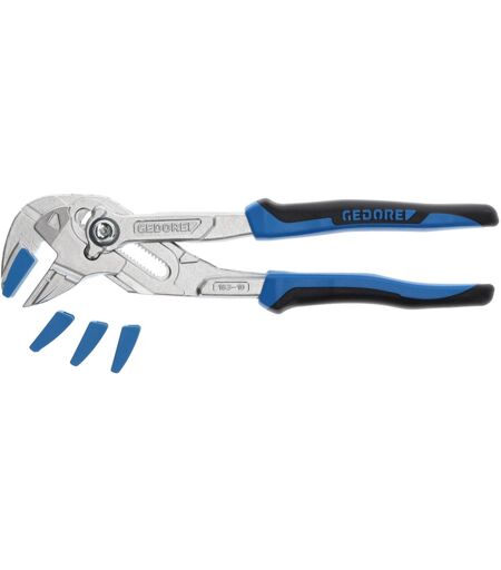 Pliernøglen SB 183 10 JC S-002 fra GEDORE tilbyder funktionerne som skruenøgle og tang i ét værktøj. Det kan erstatte to komplette skruenøglesæt, metrisk 0 - 52 mm og tommer 0 - 2 "og tillader skånsom skrueforbindelse af følsomme overflader (f.eks. Forkromede fittings). Det justerbare, universelle værktøj til skruekørsel er også perfekt til bøjning, fastholdelse, presning og greb om forskellige emner. Indstillingen af nøglebredden er praktisk talt uendeligt variabel ved hjælp af glidemekanisme og parallelle styrede kæber, indstillingen af den valgte nøglebredde låses sikkert på plads. Glidemekanismen kan aktiveres fra stort set enhver indstillingsposition. Det modreaktionsfrie system fungerer uden risiko for kantskader. SB 183 10 JC S-002 pliernøgle kan bruges som en kraftig skruestik på farten eller som en "skraldemundnøgle" til hurtig og behagelig stramning og løsning af sekskantede skruer og møtrikker, det høje gearforhold (>1:10) muliggør en høj tryk- og klemkraft på kæberne. Den er lavet af GEDORE specialkompensationsstål til de højeste belastninger. Håndpositionen er optimalt og ergonomisk tilpasset kæbernes åbningsbredde eller nøglebredde. De matchende blå bløde kæber til at skrue særligt følsomme materialer kan omarrangeres individuelt. ...