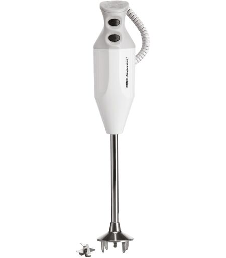 Med ESGE tryllestaven P 350 Profi kommer et kraftfuldt kraftcenter ind i det professionelle køkken, fordi den holdbare, robuste vekselstrømsmotor med 350 watt sikrer, at enten 18.000 eller 22.000 omdrejninger i minuttet kan bruges via sikkerhedskontakt. Beholdere med op til 20 liter væske kan bruges ubesværet, fordi den længere drivaksel er designet til et nedsænkningsvolumen på op til ca. 29 centimeter. Bevægelsesfriheden sikres af spiralkablet, fordi det kan forlænges op til en længde på 150 centimeter. Den lille allrounder knuser ikke kun isterninger, den pisker, hakker, rører, puréer, passerer og blander - så ESGE tryllestav P 350 Profi er forberedt til alle kulinariske eventualiteter! Clip-on centreringen sikrer, at multikniven kan bruges hurtigt og bekvemt. ...