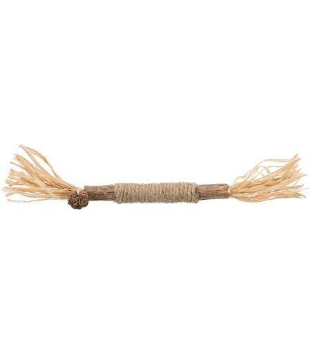 Trixie Matatabistok med frynser er et naturligt beskæftigelseslegetøj til katte. Pinden består af matatabi - en asiatisk plante, der har en lignende effekt som den klassiske kattemynte; det tiltrækker katte og inspirerer dem til at lege. Planten er også kendt under navnene japansk kattemynte eller Silver Vine. Matatabi-stokken er indpakket med jute for at hjælpe katten med at gribe fat i stokken. På begge ender hænger frynser fra stokken, der vipper på en sjov måde, når katten leger og animere den endnu mere. Trixie Matatabistick med frynser i overblik: Attraktivt legetøj til katte Helt naturligt produkt: af matatabi med tørret frugt og jute Attraktiv effekt: matatabi fungerer på samme måde som kattemynte; det tiltrækker katte og opmuntrer dem til at lege og gnave (hvilket kan understøtte tandpleje) Kartoffelsækstof: katten kan gribe pinden og kaste den op Kompakt størrelse, let vægt Farve: natur Materiale: matatabi / tørret matatabi frugt / jute bånd / frynser Mål: i alt: ca. Ø 1,5 x L 24 cm Frynser: ca. 2 x L 6,5 cm Matatabi pind: ca. Ø 1 x L 11 cm Frugt: ca. Ø 2 cm Bemærk: Grundet dette legetøjs kraftige virkning på katte, bør du kun stille det til rådighed for din kat i et begrænset tidsrum for at undgå overstimulering. Som ved alle andre produkter bør du holde lidt øje med din kat, når den leger med legetøjet. Kontroller regelmæssigt produktet for skader, og udskift legetøjet med et nyt, hvis det er defekt eller mangler dele. Ellers er der risiko for at katten kan komme til skade. ...