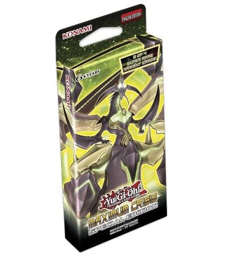 Hver Maximum Crisis: Special Edition indeholder: 3 maksimale kriseboosterpakker 1 af 2 Super Rares 1 af 2 Super Rares af preview-kort fra det næste boostersæt Originalprodukt fra Konami Advarsel!! Ikke egnet til børn under seks år! ...
