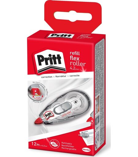 Pritt Flex Korrekturroller Smart rettetape med 12 m førsteklasses korrekturtape. Korrekturrollen er nem og behagelig at holde på, og den giver en problemfri påføring som sikrer dig et rent og pænt resultat. Derfor er det ikke noget problem at have skrevet forkert, når bare du har Pritt korrektionsrolleren ved hånden! Rettetapen er perfekt til øjeblikkelig overskrivning. Den supertynde hvide korrektionstape påføres tørt, let og elegant på papiret. Du kan omgående skrive på tapen med tusch, blæk og kuglepen. Korrekturrolleren har et fleksibelt design, som gør tovejs-korrektion mulig. Træk for at dække en hel sætning, tryk for ét bogstav. Beholderen er fremstillet af mindst 50% genanvendt plastik, og er 100% genanvendelig. Korrektionstape Skygger ikke på fotokopier Bredde: 4,2 mm Længde: 12 meter Refill kan tilkøbes, se varenr. 9900400 ...