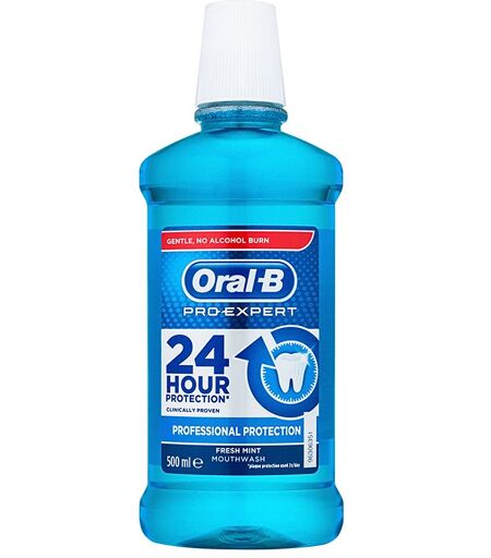 Oral-B Pro-Expert Professional Protection, 500 ml, Mundskyl unisex, Mundskyl Oral-B Pro-Expert Professional Protection frisker ikke kun din ånde op, men bekæmper samtidigt plak og hjælper med at holde tandkød og tænder sunde. Egenskaber: beskyttelse mod belægning på tænderne holder tandkødet raskt fjerner dårlig ånde længe Brugsvejledning: Skyl munden efter tandbørstning i det tidsrum, der er angivet på pakken, og spyt derefter ud. ...