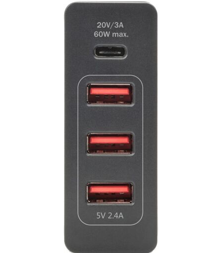 Strømkilde type: Vekselstrøm, Oplader, kompabilitet: Notebook. Indgangsspænding: 100 - 240 V, Maksimal udgangsspænding: 20 V. Antal USB 2.0-porte: 3, Antal USB type-C-porte: 1, Strømbeskyttelsesfunktioner: Overstrøm, Højspænding, Overophedning, Kortslutning. Kabellængde: 1,2 m, Produktfarve: Sort ...