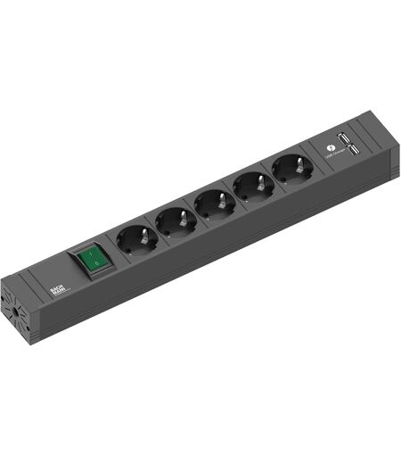 Bachmann 420.0021 stikdåse 2 m 5 AC stikkontakt(er) Indendørs Sort, Strømskinne