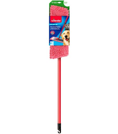 Vileda Pet Pro MICROFIBER UNIVERSAL gulvmoppen er velegnet til tør og fugtig gulvrengøring helt ned til hjørnerne. Pet Pro Microfibre Universal coveret med de røde og hvide frynser absorberer 3x flere dyrehår samt det fineste støv og partikler for et perfekt rengjort gulv. Det er velegnet til effektiv rengøring af alle hårde gulve, selv sarte gulve. Betrækket er lavet af 100% mikrofibre, der effektivt absorberer og fanger dyrehår. Den kan maskinvaskes ved op til 60°C og holder sig dermed ren og frisk i længere tid. ...