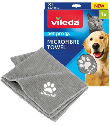 Med Vileda Pet Pro Microfibre Towel XL kan du ikke kun rengøre dit elskede kæledyr effektivt og hurtigt, men du kan også tørre det meget forsigtigt. Vileda Pet Pro sætter en stopper for fugtige uheld i huset. Takket være den skånsomme mikrofiber absorberer Vileda Pet Pro håndklædet fugt på ingen tid og tørrer lige så hurtigt. Så det er altid klar til brug, når det er nødvendigt for kæledyret efter næste tur. Vileda Pet Pro mikrofiberhåndklædet tørrer inden for cirka 4 timer, mens konventionelle bomuldshåndklæder tager meget længere tid. Den specielle "vaffelstruktur" fjerner skånsomt snavspartikler og sikrer en lang levetid. Vileda Pet Pro Microfibre Towel giver dit kæledyr den ekstra pleje, det fortjener. ...