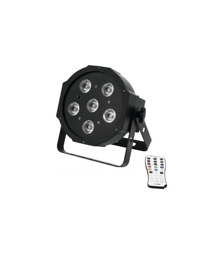 Flat spotlight with 5 x 3 W 3in1 LED (RGB) and one 3 W UV LED, incl. IR remote control Flacher Scheinwerfer mit 5 x 3-W-3in1-LED (RGB) & einer 3-W-UV-LED Slim design for space-saving applications DMX... - TILBUD NU, pris kun 759,00 (før 899,00) etage gulv ...