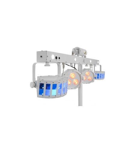 Bar with 2 derbies, 2 spots, white strobe LEDs, laser (RG, 2M), foot switch Compact lightweight Crossbar with integrated DMX control unit and stand sleeve 2 laser diodes project hundreds of red and green laser... - TILBUD NU, pris kun 4419,00 (før 5299,00) ...
