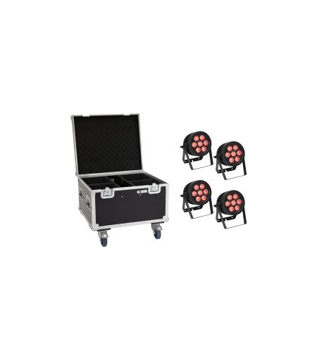 EuroLite Set 4x LED IP PAR 7x8W QCL Spot + Case with wheels TILBUD NU